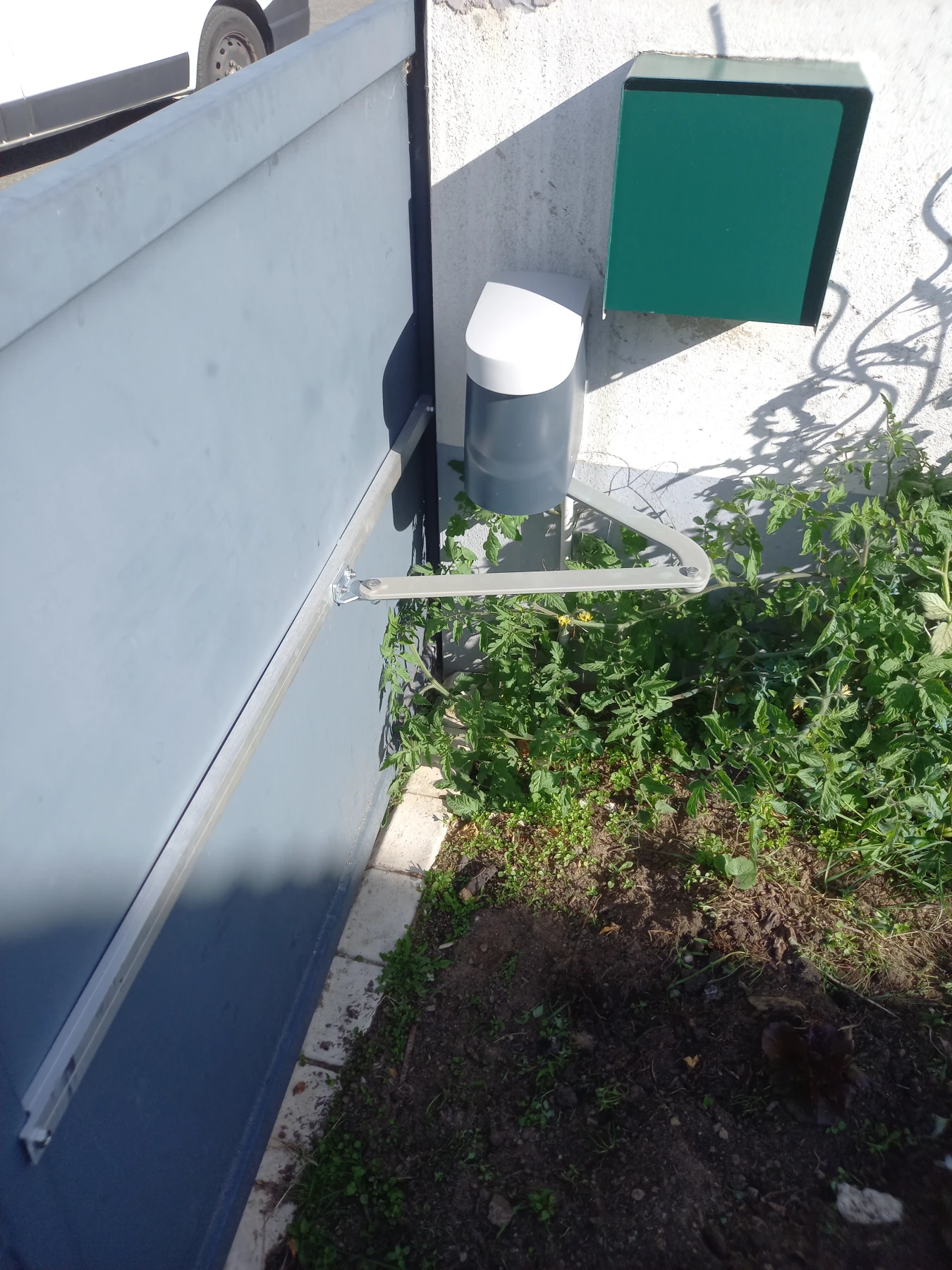 Installation d'une motorisation sur un portail aluminium à 2 battants. Pose de barres de renfort sur le portail pour permettre celle-là. Alimentation en tranchée dans le jardin jusqu'au tableau divisionnaire.
